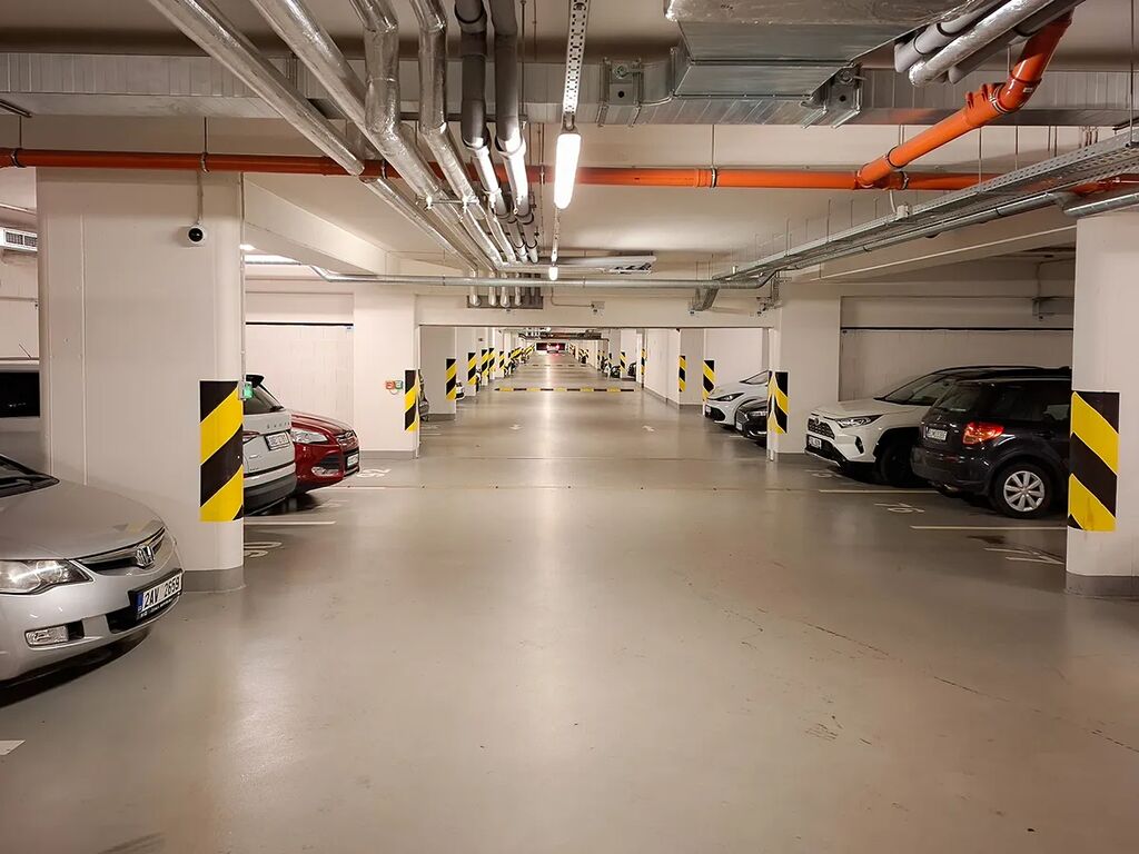 Exkluzivní nabídka dlouhodobého pronájmu 1 garážového stání (13 m2) a suchého sklepu / skladu (3 m2) v novostavbě v ul. Krnkova z r. 2020. Sklep je zajištěný plnými uzamykatelnými dveřmi a navíc i bezpečnostní mříží od certifikovaného dodavatele. Garážové stání je na úrovni vjezdu. Vjezd do garáže je monitorován kamerovým systémem, vrata na dálkové ovládání, pěší přístup po schodišti nebo výtahem přes dům.