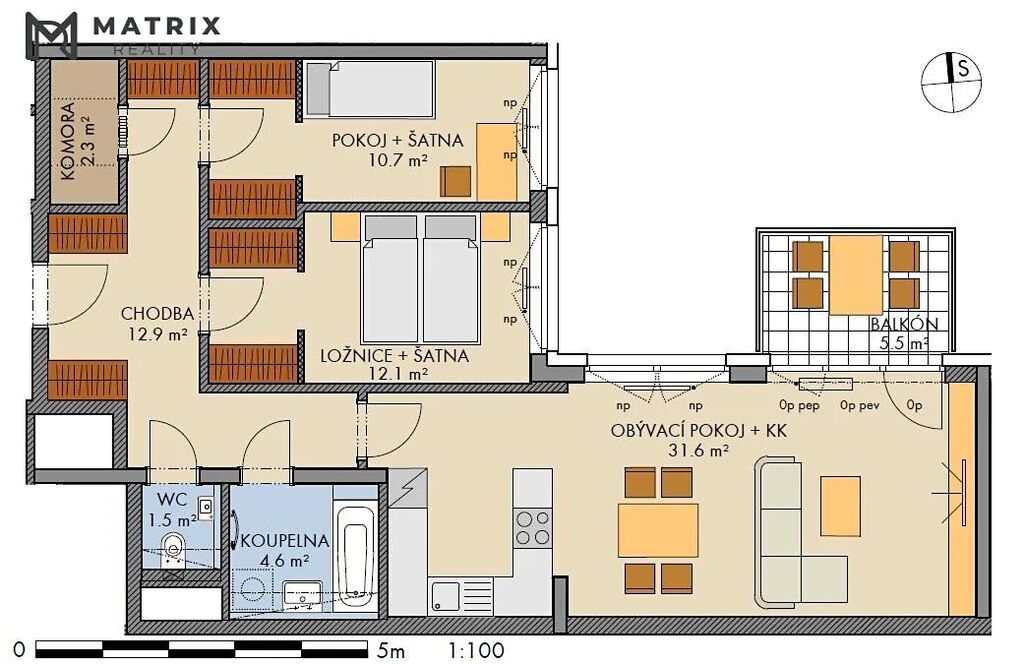 Moderní byt 3+kk s balkonem, sklepem a dvěma garážovými stáními Praha 9, Vysočany