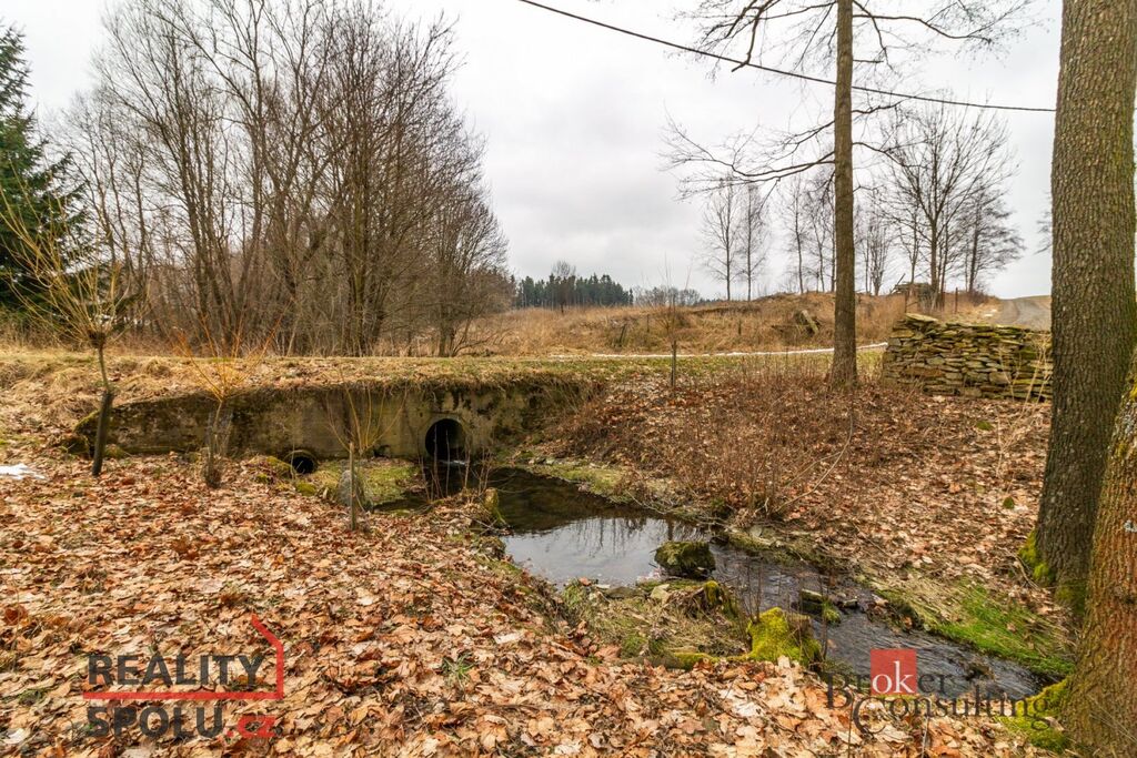 - Pozemek zahrnuje části na obou stranách klidného potoka Suchá.