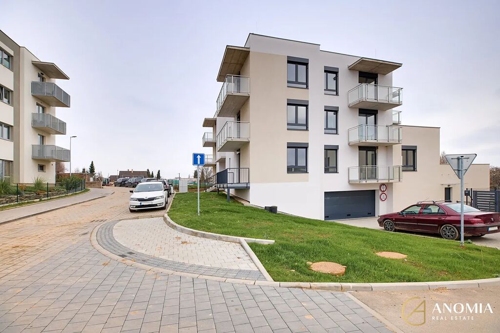 Byt se nachází v 1. nadzemním podlaží bytového domu s výtahem a jeho velkou předností je prostorný balkon o ploše 7,6 m2 s jihozápadní orientací, který nabízí příjemný výhled do okolní zeleně. Jižní orientace zajišťuje dostatek světla po celý den. K bytu náleží sklepní kóje v přízemí a také vyhrazené parkovací garážové stání, které je již zahrnuto v ceně pronájmu. Byt disponuje moderní kuchyňskou linkou včetně spotřebičů, přičemž je zde připraveno i připojení pro myčku a lednici. Koupelna je řešena sprchovým koutem. V celém bytě jsou položeny kvalitní vinylové podlahy.