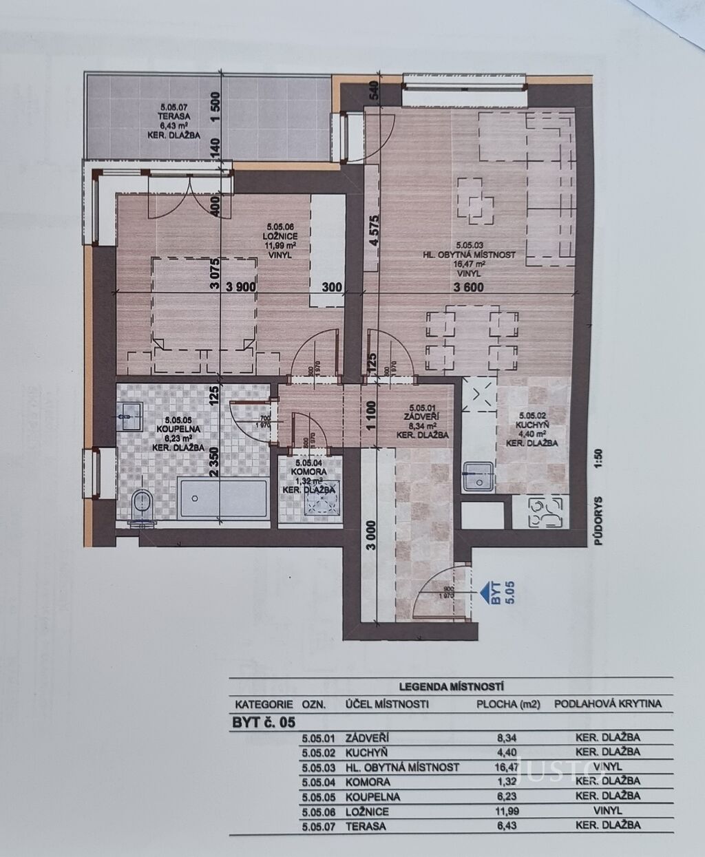 Ve výhradním zastoupení majitele Vám nabízím k pronájmu byt 2+kk s terasou o celkové výměře 56,1 m².