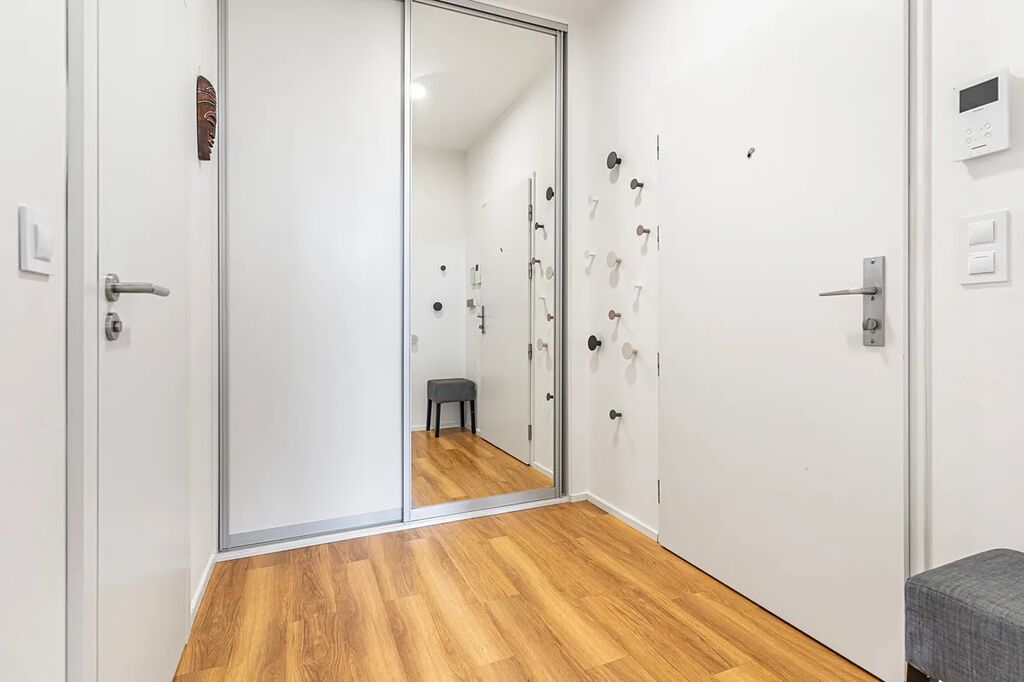 Pro zájemce o hezké a komfortní vlastní bydlení, nabízím exkluzivně byt v osobním vlastnictví 3+kk s lodžií i balkonem (81,6m2 + 9m2 + 6,8m2), včetně garážového stání a sklepní kóje. Dům, v němž je bytová jednotka situována ve 2. patře (3.NP), se nachází v klidné části Prahy 3 - Strašnice, ulice Zvěřinova. Dům byl vystavěn v rámci projektu TULIPA Třebešín I., a byl dokončen v roce 2016. Hlavní část bytu tvoří světlý obývací pokoj s kuchyňským koutem (celkem 30m2). Tento prostor skýtá dostatek místa pro sedací soupravu, rodinný jídelní stůl a kompletně vybavenou kuchyňskou linku (indukční varná deska, el. trouba kombinovaná s mikrovlnnou troubou, myčka, vinotéka), spotřebiče zn. Siemens a Electrolux. Po většinu roku tento obytný prostor příjemně rozšiřuje lodžie (9m2), orientována tak jako celý byt na jih. Byt dále nabízí dvě ložnice. Menší z nich, aktuálně využívaná jako dětský pokoj (13,7m2), má také přístup na lodžii společnou s obývacím pokojem. Větší ložnice (15,5m2), má součástí prakticky řešenou šatnu a vstup na samostatný balkon (6,8m2). V centrální části bytu nalezneme koupelnu osazenou jak vanou, tak sprchovým koutem a umyvadlem. Toaleta je řešena samostatně, přístupná ze vstupní předsíně. V celém bytě jsou velmi prakticky řešeny úložné prostory, vestavěný nábytek na míru výrobce Indeco, sanita Villeroy & Boch. Interiér bytu byl vkusně koncipován již od počátku, díky praktickému odstínu vinylové podlahy a využití bezfalcových interiérových dvěří. K bytu náleží garážové stání a sklepní kóje. Pokud by budoucí vlastník potřeboval, je zde možnost dokoupit druhé garážové stání. PENB budovy B. Nemovitost je vhodná pro zájemce, který hledá bydlení ve skutečně klidné lokalitě, přesto se všemi benefity Prahy 3 a plnou občanskou vybaveností a dopravní obslužností. Osobní vlastnictví umožňuje zajištění financování hypotečním úvěrem. V případě zájmu o další informace či prohlídku mě, prosím, kontaktujte. Těším se na viděnou.