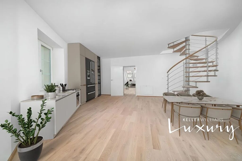 kuchyně je ideálním prostorem pro kulinářské zážitky, zatímco schodiště z kuchyně vede na venkovní terasu s výhledem na Pražský hrad a vnitřní zahradu. Terasa je plánována jako vysokozátěžová s protiskluzovou dlažbou, je zde příprava na umístění prosklené sauny, whirpoolu pro 4 osoby, sprchy a grilovacího centra. Zábradlí je zhotoveno z tahokovu Perfo Linea.
