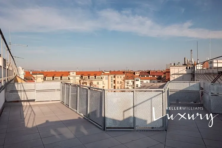 terasu o rozloze 51 m² s výhledem na Pražský hrad a možností vybudování wellness zóny.