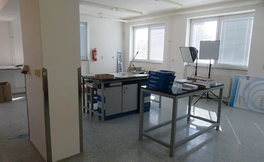 Konstrukce výrobní budovy je smíšená, ze železobetonových sloupů s panelovým opláštěním a hliníkovými okny. Zde se nachází sklady, dílny, výrobní haly, jídelna a zázemí pro zaměstnance. Budova je vytápěna plynovým kotlem či tepelnými čerpadly (vzduch/voda), která zajišťují vytápění i klimatizaci. V budově se nachází nákladní výtah s nosností 2 400 kg a výtah jídelní.