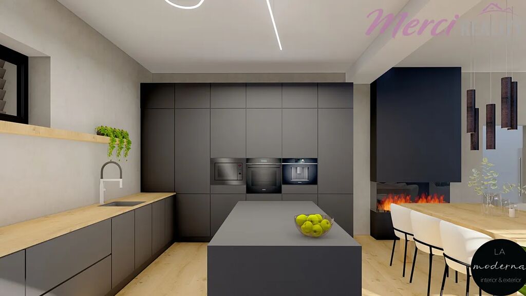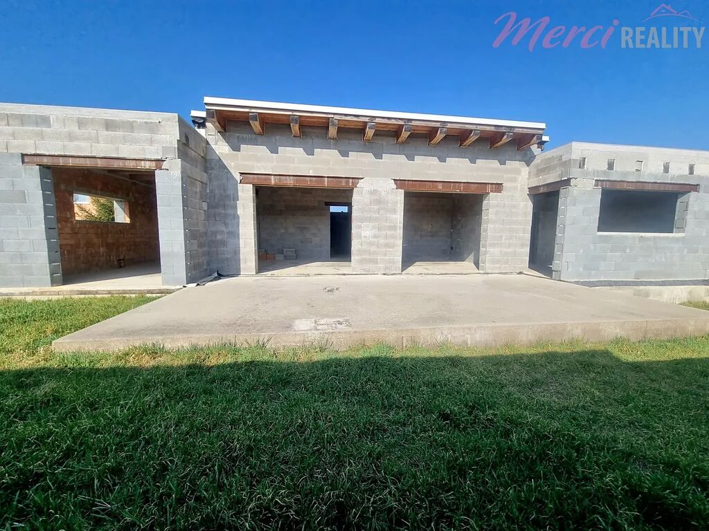 Hledáte nové nadstandardní bydlení v okolí Uherského Hradiště? Pokud nechcete dlouze čekat na koupě vhodného pozemku a řešit projekt se stavebním povolením, tak tu máme něco právě pro Vás. Nabízíme Vám hrubou stavbu rodinného domu s dispozicí 4+kk s terasou 50m2 ve městě Kunovice v ulici Na Samotě. Částečně podsklepený dům je postaven velmi kvalitně z betonových tvárnic. Z levé strany domu je vjezd do garáže, kde se také počítá s prostorem na vinný sklípek s posezením. Příjemné je také, že garáž má přístup schody přímo do domu. Kolem domu je postavený betonový plot, který čeká už jen na fasádní barvu a vstupní bránu na dálkové ovládání. Zastavěná plocha tohoto domu je 199,5 m2 + terasa 50m2. Vytápění domu bylo navrhnuto plynem, který je již přiveden přímo k domu. Samozřejmě je na novém majiteli jaké si zvolí vytápění. V obývacím pokoji se také počítalo nejen pro příjemnou atmosféru, ale i s náhradním vytápěním se spuštěným prostorovým krbem. Část střechy domu je téměř rovná a druhá část je střecha valbová. Střecha je pokryta trapézovým plechem o tloušťce 1,1mm. Kromě napojení domu na obecný vodovod, je také na předzahrádce k užívání studna. V přední části domu jsou dva pokoje umístěné naproti sobě pro absolutní soukromí. Z pokoje v pravé části domu se může vstoupit na dvůr z boční strany. Z druhého pokoje se zase vstupuje na menší terasu. Přes vstupní halu dále je chodba, koupelna s WC, technická místnost, prostorná kuchyň s jídelním koutem 38m2 a spolu s obývacím pokojem má dohromady 55m2. Z kuchyně a z obývací části domu je vstup na terasu a zahradu. Do ložnice 18,2 m2 se vchází také z obývacího pokoje a u ložnice je také připravený prostor na koupelnu s WC. Připravili jsme si pro Vás vizualizaci exteriéru i interiéru pro představu, jak by dům mohl po dokončení vypadat. Výhodou domu v hrubé stavbě je, že je ve stavu, kdy si můžete upravit, navrhnout a vybavit již vše dle Vašeho vkusu.