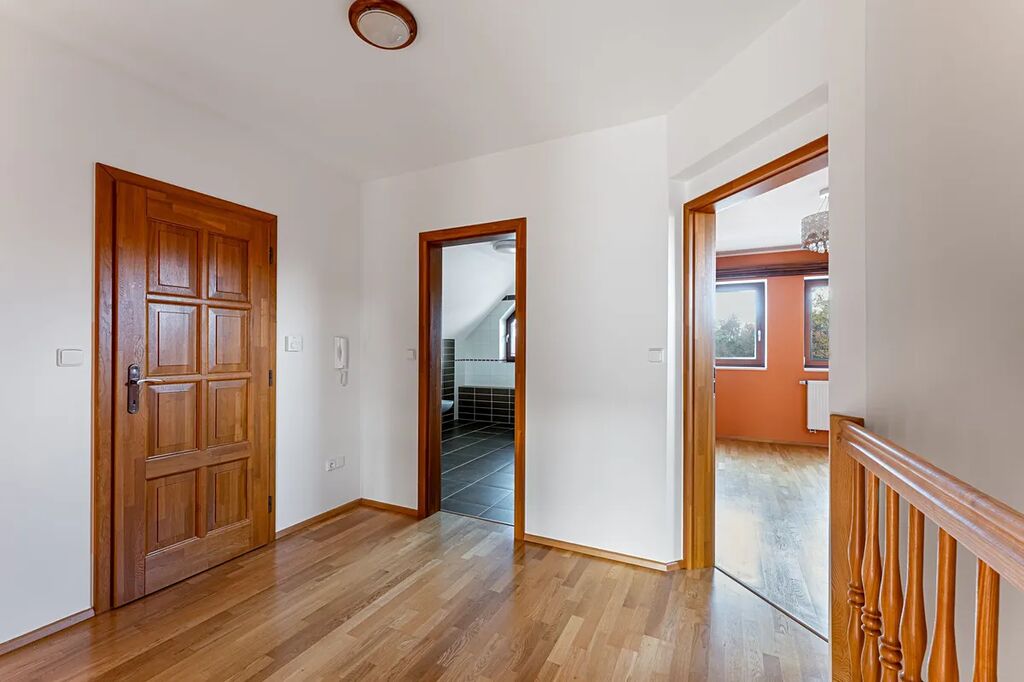 Podkroví má dalších pět samostatných místností – ideálních jako hlavní ložnice, tři dětské pokoje a pracovna, nebo kombinace ložnic, hostinského pokoje, fitness či hobby room. Možnosti jsou neomezené! Koupelna s vanou, WC a umyvadly. Poslední místností je technická místnost v patře.