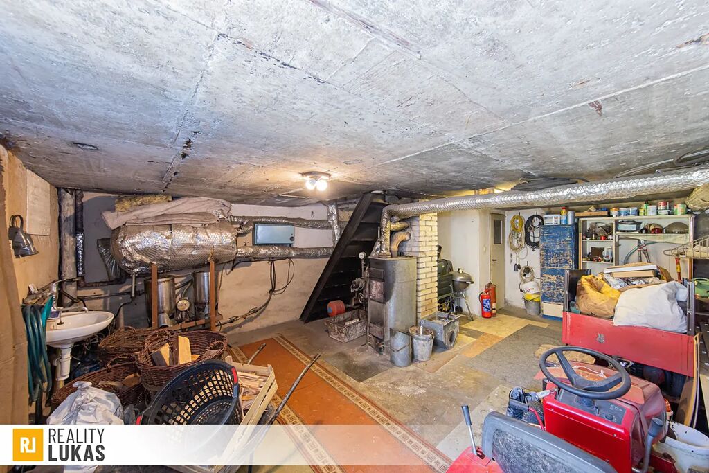 • sklep je přístupný jak z chaty, tak i z venku přes vrata. Ve sklepě je spíž, je zde umístěný bojler na ohřev teplé vody, vodárna na studnu a umývadlo