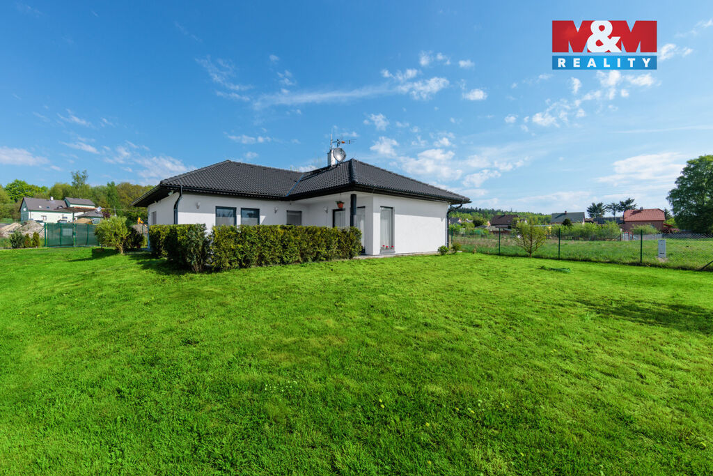 K prodeji nabízíme moderní bungalov 4+1 v obci Hazlov u Františkových Lázní. Kvalitní novostavba od RD Rýmařov, zkolaudovaná roku 2021, je ve skvělém stavu a stále v záruce. Dům stojí na prostorném oploceném pozemku o velikosti 1 489 m², kde je možné postavit i další dům.