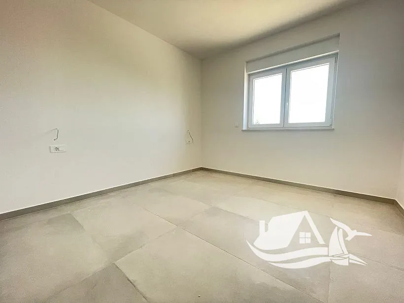 Byt se skládá z chodby, koupelny s WC, dvou ložnic, obývacího pokoje a kuchyně. K bytu náleží prostorná terasa o velikosti 15,86 m², která je částečně zastřešená a poskytuje ideální místo pro relaxaci s výhledem na celý záliv Novalja. Díky mírnému sklonu terénu je výhled nerušený a zajišťuje maximální soukromí.