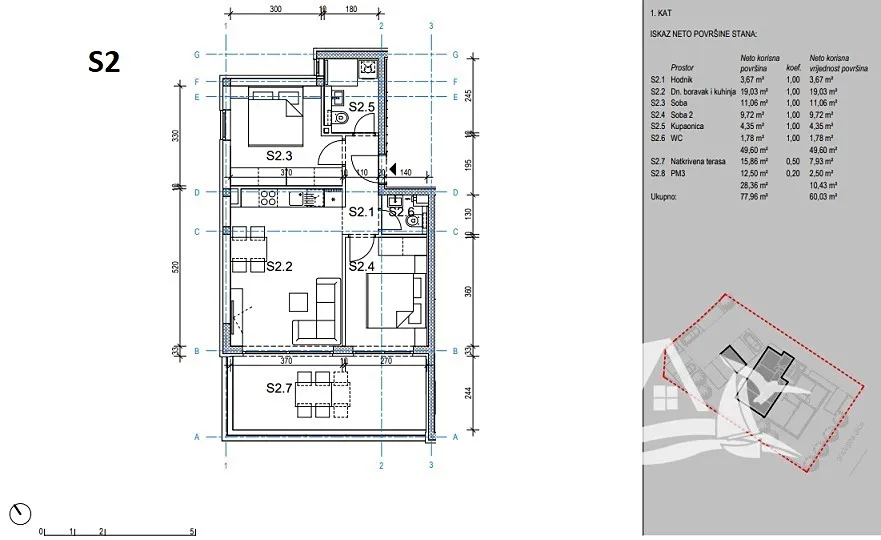 Nabízíme k prodeji třípokojový byt (S2) o rozloze 60,03 m², který se nachází v prvním patře novostavby v oblíbené lokalitě Novalja. Byt nabízí moderní dispozici a jedinečný panoramatický výhled na moře.