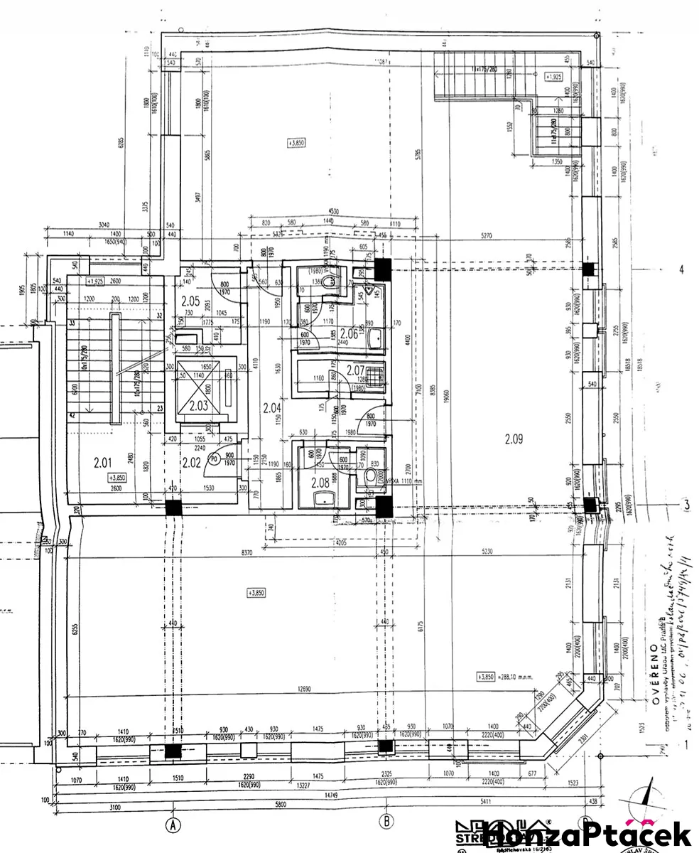 - Celková plocha: 418,75 m² (213,10 + 205,65 m²)
