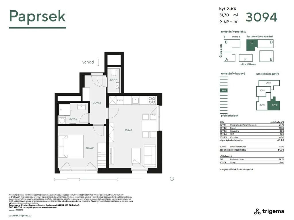 Nabízíme Vám jedinečnou nabídku pronájmu moderního bytu 2+kk s krásným výhledem na Prahu, nacházející se v rezidenčním komplexu PAPRSEK – přímo u stanice metra B – Stodůlky. Tento byt je umístěn v 9. NP a s užitnou plochou bytu 51,7 m² + 7,6 m² sklep je ideální pro pár nebo jednotlivce, kteří ocení luxusní a moderní design.