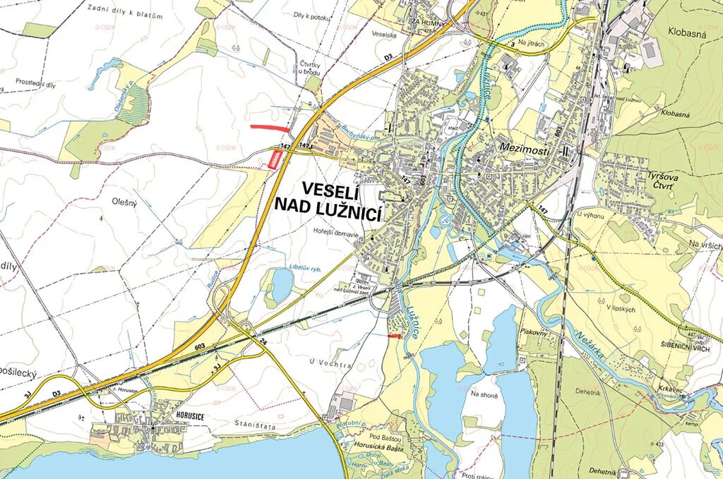 V katastrálním území Veselí nad Lužnicí v okrese Tábor nabízíme k prodeji vlastnictví na souboru pěti pozemků zapsaných na listu vlastnictví č. 1198.