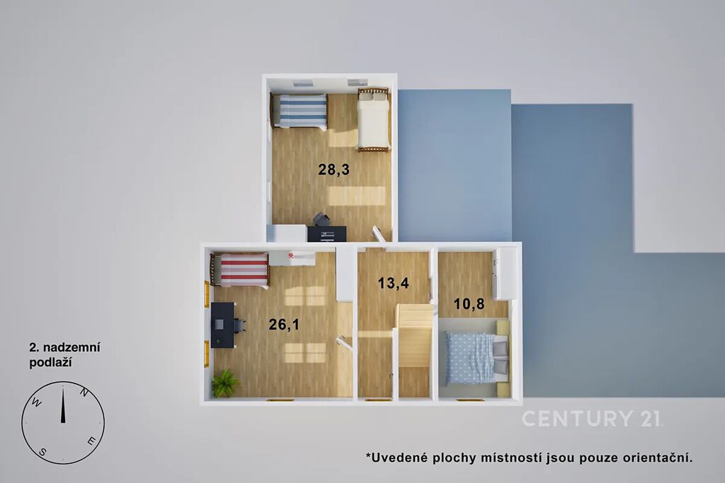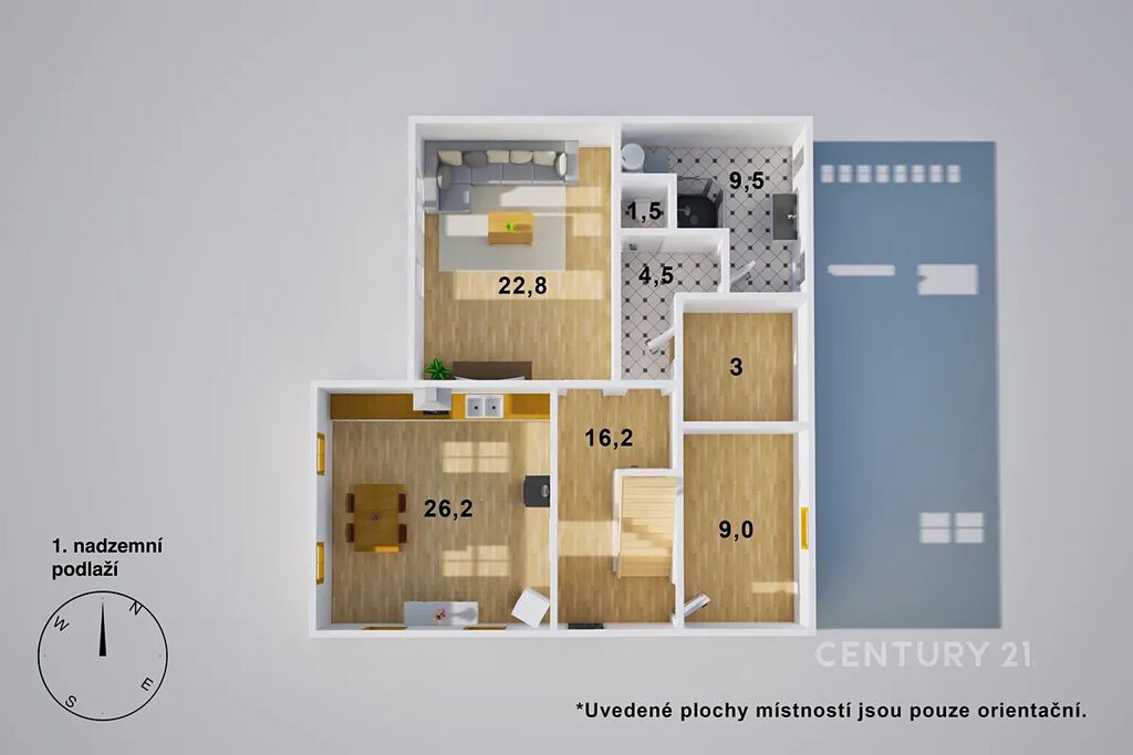 Dispozice 5+1 nabízí samostatné pokoje, ideální pro děti, pracovnu i hosty.
