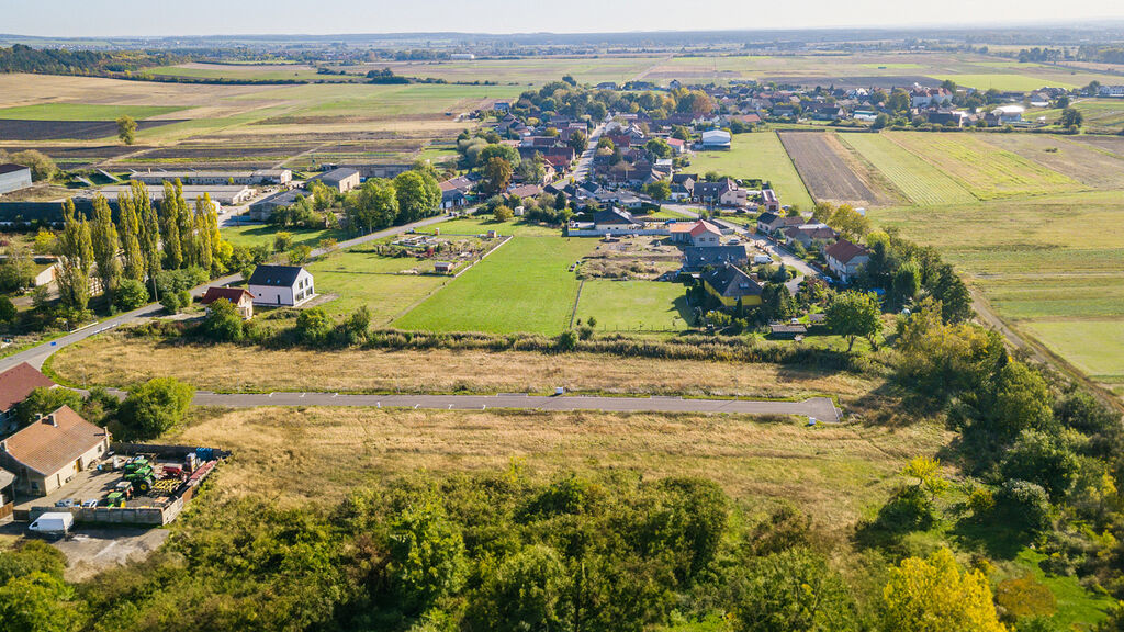Stavební pozemek 803 m² pro stavbu RD včetně připraveného napojení (přípojek) a nové příjezdové asfaltové komunikace s veřejným osvětlením; připravený vjezd až na parcelu.