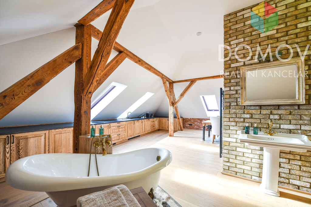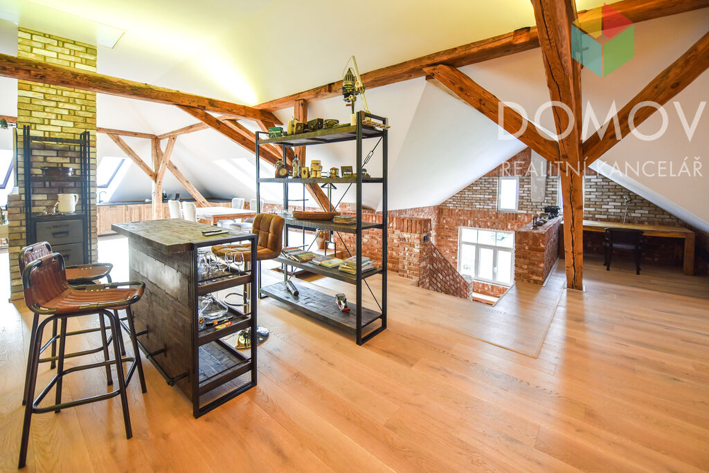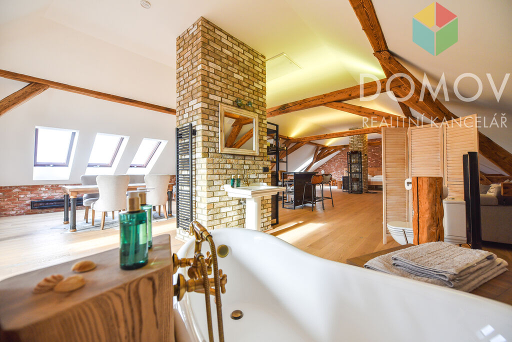 Nabízíme exkluzivně k pronájmu jedinečný, nadstandardně prostorný podkrovní byt o velikosti 200 m², který se nachází ve 2. patře domu v Berouně – Závodí. Byt je řešen jako jedna velkorysá otevřená místnost s designovou volně stojící vanou, toaletou, obrovskou kuchyňskou linkou s indukční varnou deskou, myčkou a lednicí. Součástí prostoru je také pracovní místo s dubovým stolem vhodné jako plnohodnotná kancelář. Byt je kompletně vybaven stylovým nábytkem včetně pohovky, velkou televizí a dalšími detaily, díky kterým je možné okamžité nastěhování bez dalších investic. Po domluvě s majitelem je možné zajistit i pravidelný úklid a výměnu ložního prádla či ručníků.
