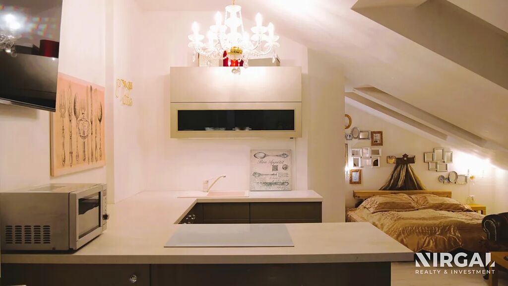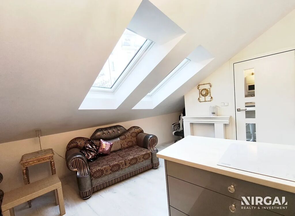 Nabízíme k prodeji stylový podkrovní byt 1+kk (35 m²) – pro milovníky autentické Prahy, kteří však žijí v rytmu moderního města.
