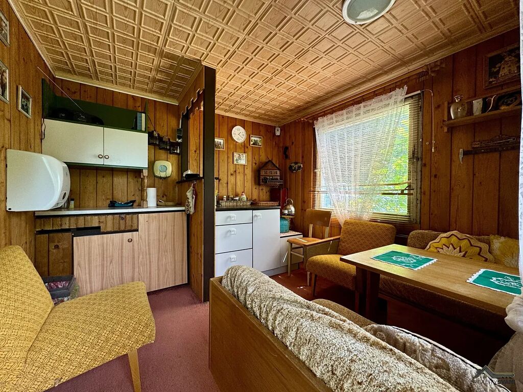 Nabízíme ke koupi pozemek se zahradní chatou bez pevného základu, postavenou na 20m2 s obytnou plochou 24m2. Stavba se nachází na samostatném pozemku, s přístupem po vlastní cestě. Na pozemku je kromě chaty také kryté posezení, krb, sprchový kout, do kterého je napojena dešťová voda a dopouští se vodou z řádu, skleník a několik vzrostlých stromů.