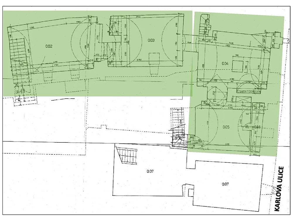 Prostor se nachází v suterénu budovy a disponuje přímým vstupem z pasáže (k dispozici dva vstupy). Současný provozovatel požaduje odstupné. Provize RK je 1× měsíční nájem + DPH.
