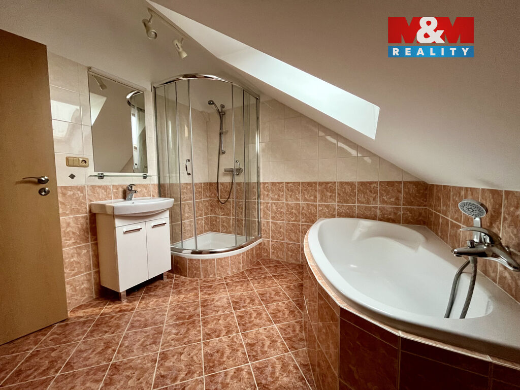 Nabízíme k pronájmu krásný podkrovní byt o velikosti 84 m² v klidné části Kolína. Byt se nachází v podkroví rodinného domu a je ve velmi dobrém stavu. Disponuje obývacím pokojem s vybaveným kuchyňským koutem s myčkou, indukční deskou, troubou a odsavačem par. Obytný prostor doplňují dvě ložnice, koupelna se sprchovým koutem, vanou a prostorem pro pračku i sušičku a samostatné WC. Vytápění a ohřev vody zajišťuje vlastní plynový kotel. K bytu náleží kolárna. Parkování je možné na ulici před domem. V blízkosti se nachází autobusová zastávka, cyklostezka či sportoviště. Ideální bydlení pro ty, kteří hledají klid a pohodlí. Pro více informací či sjednání prohlídky kontaktujte makléřku.