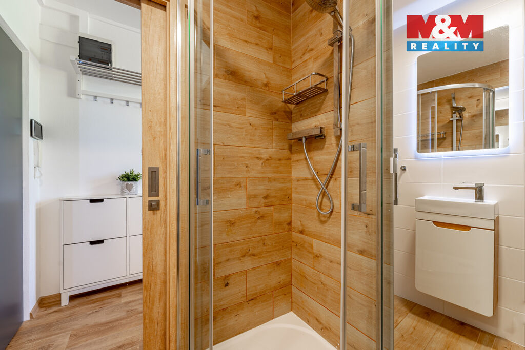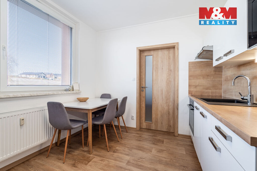 Byt je volný k nastěhování ihned a zůstane v něm k dispozici kuchyňská linka a vybavení koupelny.