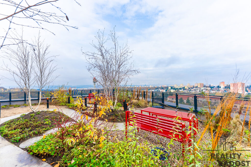 Střešní zahrada: Na stejném patře, kde se nachází Váš byt, na Vás čeká krásná a prostorná střešní zahrada. Tato společná oáza klidu je ideálním místem pro relaxaci a odpočinek s jedinečným výhledem.