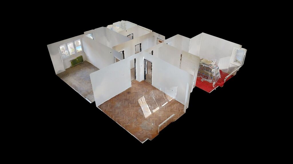 Dispozice: vstup chodba pokoj 1 kuchyně s lodžií pokoj 2 pokoj 3 pokoj 4 s výstupem na druhou lodžii koupelna samostatné WC. K bytu náleží prostorný sklep v suterénu budovy.