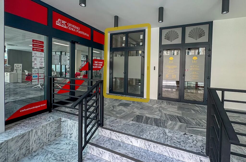 - Shell & core včetně nových podlah a plnospektrálního osvětlení – finální dokončení na míru dle projektu nájemce (rozvody vody/odpadu pro křeslo, elektro, VZT apod.).