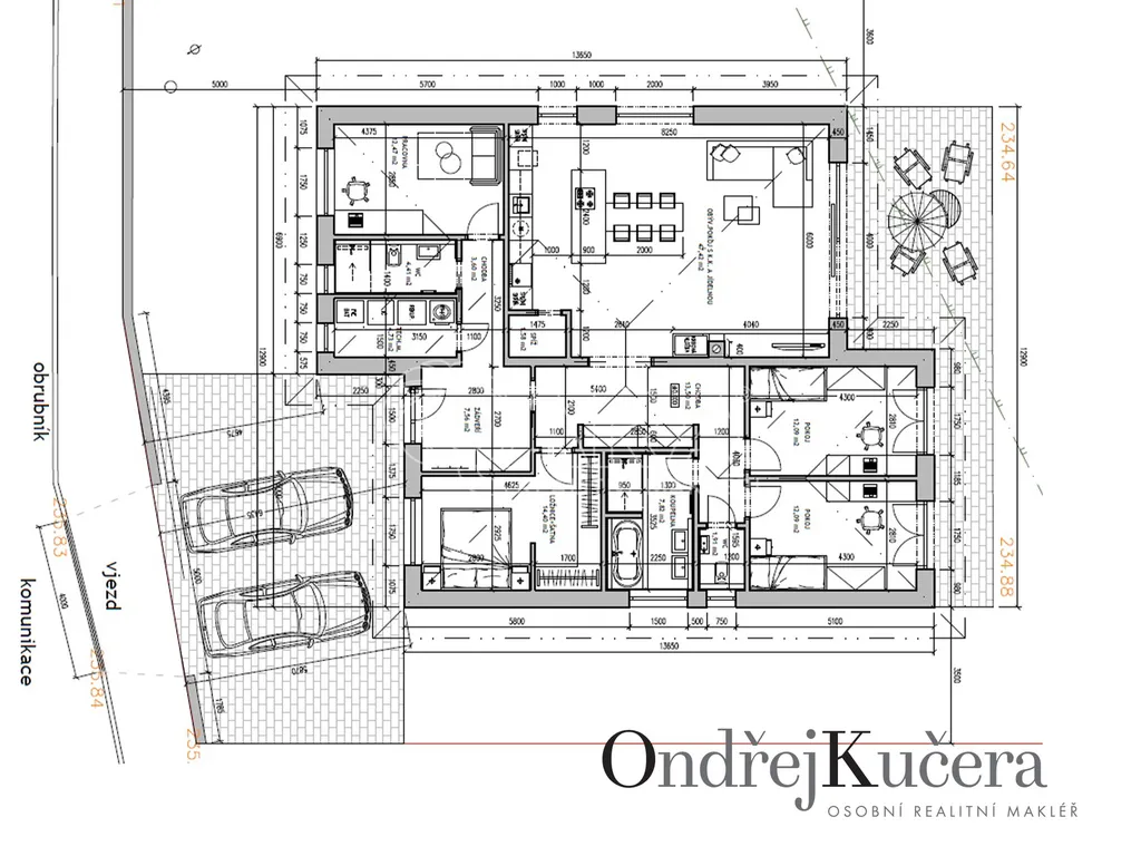 V ceně pozemku je i projekt se stavebním povolením pro vybudování přízemního rodinného domu, takže můžete začít ihned stavět. Jde o příjemně navržený cihlový bungalov s energetickou náročností typu A s dispozicí 5+kk s terasou a parkovacím stáním pro dva vozy o celkové zastavěné a zpevněné ploše 268 m2. Pro okamžité čerpání elektřiny na případnou výstavbu je dodělána dodatečná přípojka. V roce 2025 je plán napojení domu na již vybudovanou obecní kanalizaci, takže navržená jímka se využije jako retenční nádrž na dešťovou vodu.