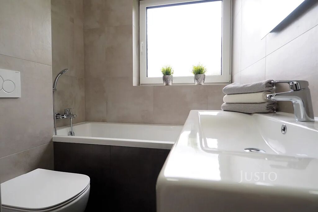 Byt se prodává včetně dokončených zařizovacích prvků – součástí ceny jsou vinylové podlahy, obklady a dlažba, nadstandardní sanitární vybavení GROHE včetně termostatických baterií a přípravy na bidetové WC, interiérové dveře včetně zárubní.