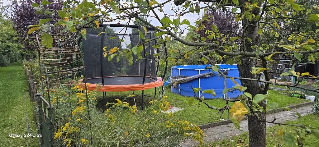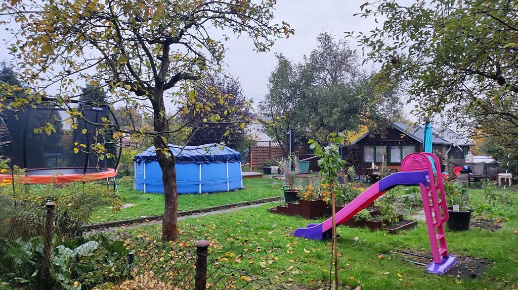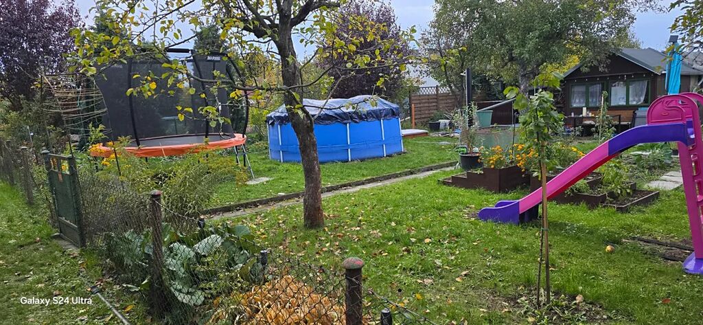 Zahrada s ovocnými stromy a záhonky vám poskytne možnost trávit čas ve spojení s přírodou, ale i k posezení s možností grilovat a vychutnávat si plody vaší zahradnické práce či relaxu volna. Na fotografiích je rozestavěná plechová bouda, která má podnájemcům sloužit pro přesunutí dřeva z přístřešku navazujícího na chatu, což umožní chatu rozšířit o další užitný prostor. Nabízí se i varianta možnosti zastavění plochy až 25m2. Majitel chatku přenechá i s vybavením pro dětské hry (viz. foto), pokud bude klient chtít. Přijďte se podívat, rad Vás pozvu na prohlídku místa.