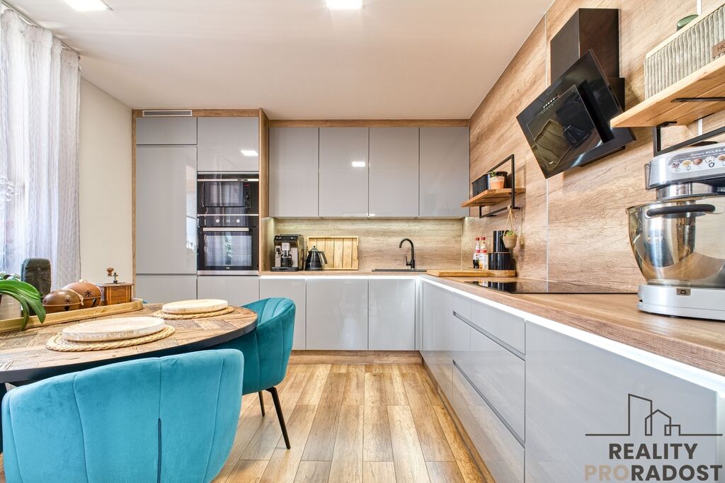 Technický stav bytu - byt prošel před pár lety kompletní rekonstrukcí (nová elektroinstalace včetně nového rozvaděče, vše má svůj vlastní okruh, vyzdění bytového jádra, rekonstrukce rozvodů vody, vytvoření ventilace, SDK podhledů, aplikaci keramické dlažby, instalaci sanity, sjednocení nášlapových vrstev podlah, aplikace sádrové omítky a stěrky, instalace LED osvětlení včetně LED pásků do koupelny a obývacího pokoje, pokládka kvalitní podlahy, instalaci interiérových dveří a dále montáž kuchyňské linky a vestavěných spotřebičů) včetně změny dispozice. Byt je v perfektním stavu. Vybavovací předměty (nábytek) není předmětem prodeje.