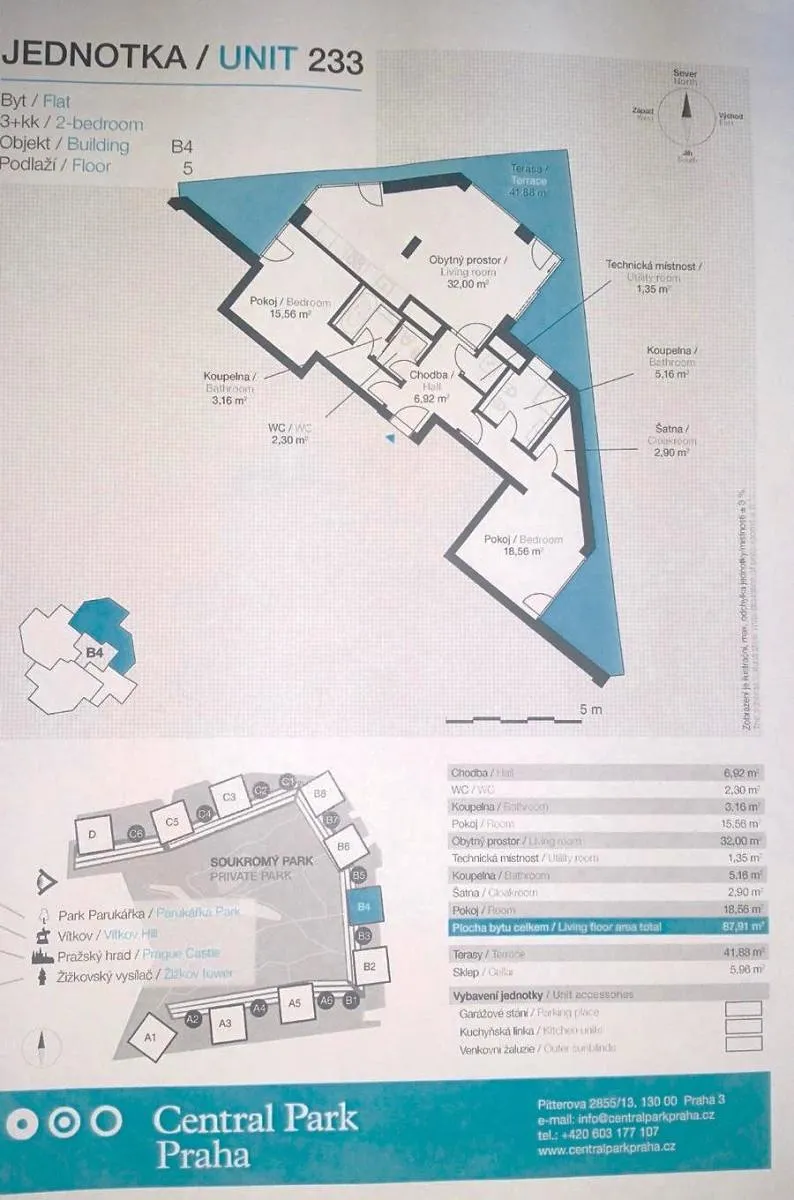 Nabízíme k pronájmu prostorný a světlý byt 3kk ve 5NP o užitne ploše 88 m2, a terasy celkem 42 m2, kompletním vybavením který se nachází v renomovaném rezidenčním komplexu Central Park Praha v městské části Praha 3 Žižkov.