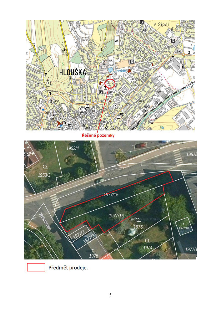 Pozemek se nachází v městské části obce Hlouška a je přístupný z místní zpevněné komunikace ulice Waldhauserova. V okolí pozemku stojí převážně objekty k trvalému bydlení a objekty obchodů. Místní část Hlouška navazuje bezprostředně na střed města a jeho centrum.