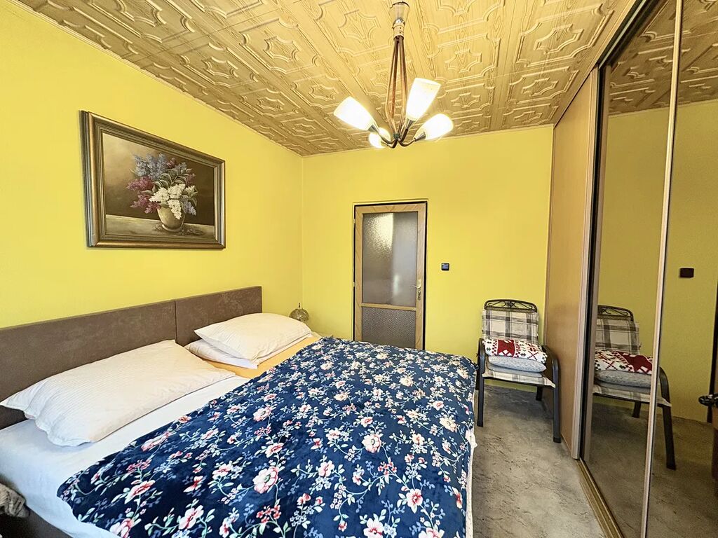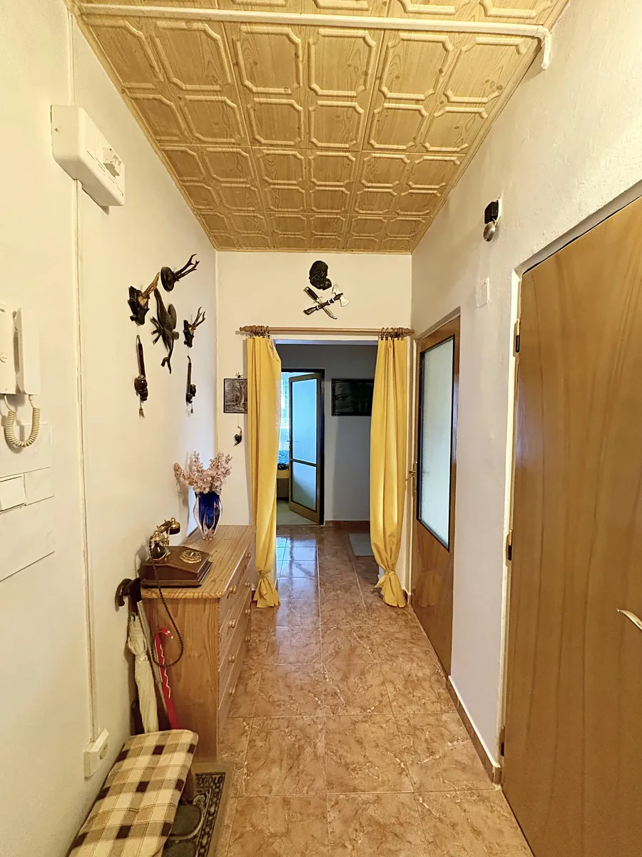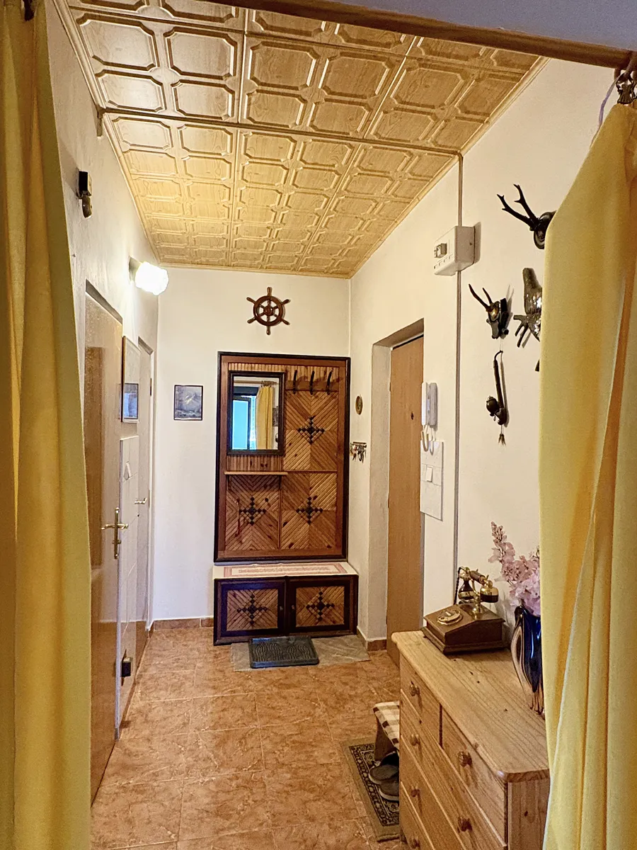 Byt se nachází na 3. NP panelového domu s výtahem. Z prostorné předsíně se vchází do všech neprůchozích pokojů, do koupelny s malou vanou, na samostatnou toaletu a do praktické komory. Obývací pokoj má výměru 17,9 m2 a vstup na zasklenou lodžii, v ložnici (12,9 m2) je velká šatní skříň na míru přes celou stěnu a vstup na druhou lodžii. V kuchyni je starší kuchyňská linka s kombinovaným sporákem a lednicí. Je z ní vstup na třetí lodžii - každá z lodžií má výměru 3,4 m2 a je nově zasklená. V bytě jsou plastová okna a jádro je vyzděné. Byt prošel rekonstrukcí v roce 2002, kdy byly vyměněny rozvody vody do plastu a udělána nová dlažba a obklady v kuchyni, na chodbě a v koupelně. Celková výměra bytu bez lodžií je 53,1 m2. K bytu patří sklep v suterénu domu.