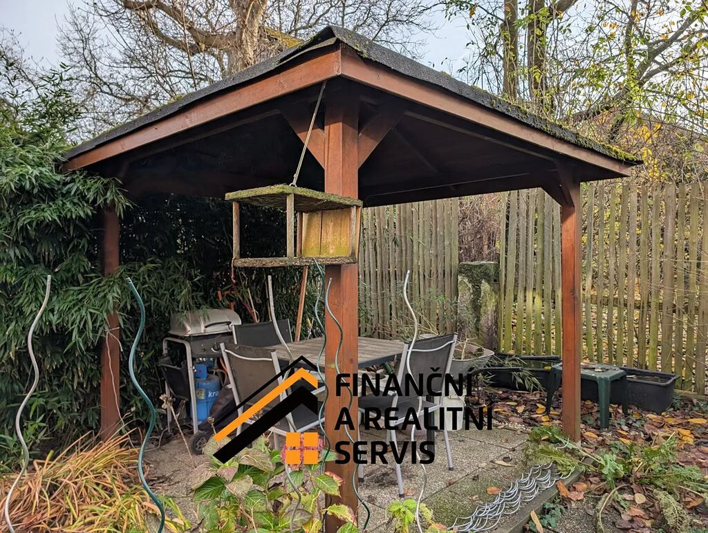 Dřevěná garáž umístěná na společném pozemku – velký benefit v lokalitě.