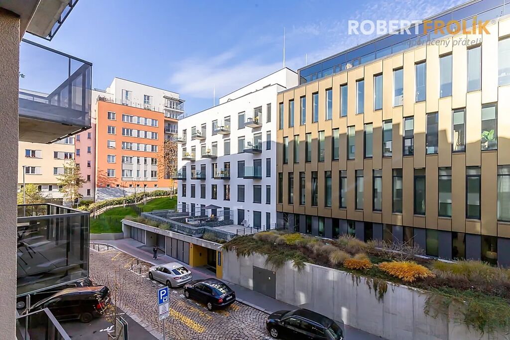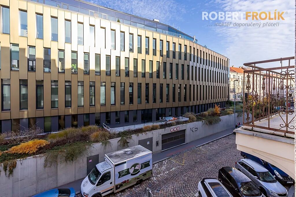 Obývák s kuchyňským koutem je prostorný, má velkou prosklennou stěnu a balkon, který si svou velikostí nezadá s malou terasou! Je otočený na jih směrem k ulici Vrchlického. Vzhledem k umístění bytu a protějšímu domu tu nebude nikdy horko! Sousední dům totiž příjemně stíní a částečně i tlumí hluk z dopravy na ulici Vrchlického. V kuchyňském koutu najdete všechny spotřebiče: lednici s mrazákem, elektrickou troubu, indukční varnou desku, digestoř, mikrovlnku, myčku. Ložnice jsou tiché, otočené na sever do ulice Starokošířská. Do koupelny se Vám vejde pračka i sušička. Na vaně přibude oproti fotografiím ještě sprchová zástěna, nad umyvadlem zrcadlo s osvětlením a pod umyvadlem bude toaletní skříňka. Ostatní zařízení už musíte mít své.