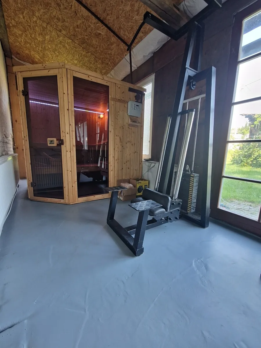 Součástí nemovitosti je terasa (4 × 3 m), bazén (7 × 3,5 m), finská sauna, domácí fitness, pergola a nově vybudované parkovací plochy pro 10 vozů (4 před domem, 6–8 uvnitř pozemku). Celý areál je oplocen novým betonovým plotem (cca 130 m) se dvěma vjezdy – 6m brána na dálkové ovládání a 5m manuální brána.