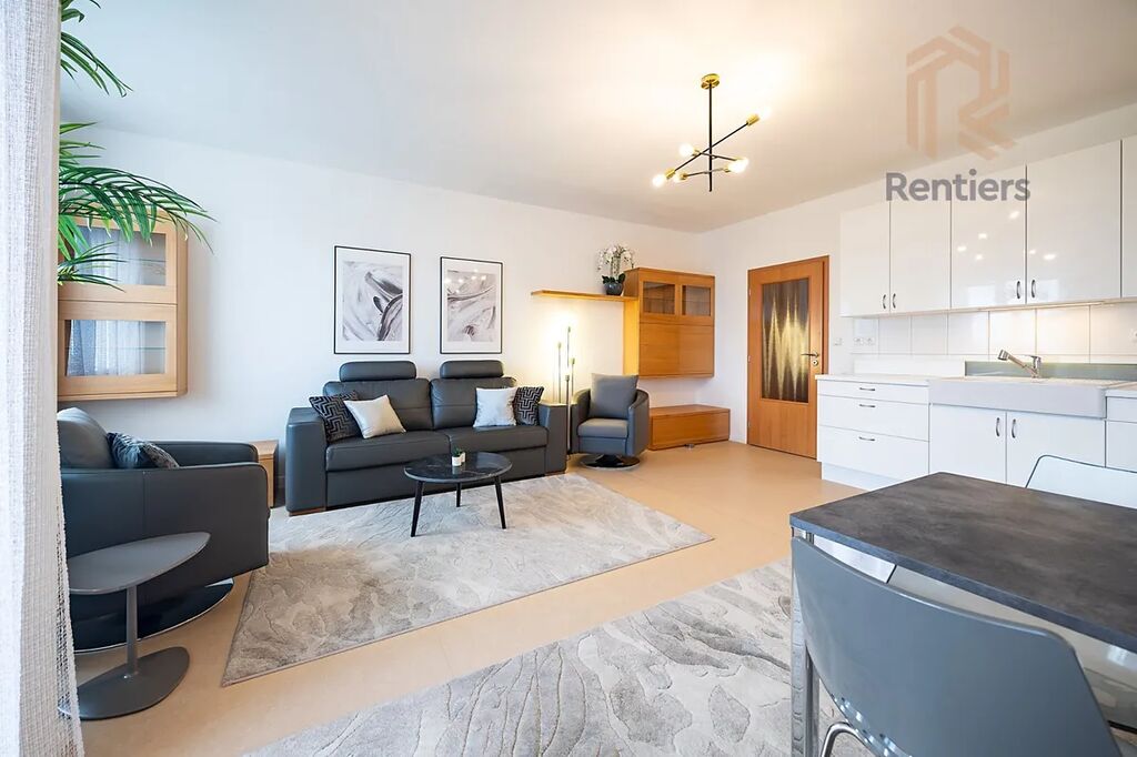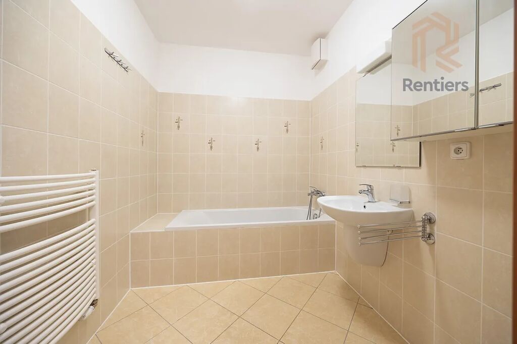 Dispozice bytu je velmi dobře řešená – zaujme prostornou koupelnou s vanou (5 m²) a samostatným WC. Hlavní obytná místnost s kuchyňským koutem má výměru 27,32 m² a nabízí východní orientaci s pěkným, ničím nerušeným výhledem směrem na Kunratický les.
