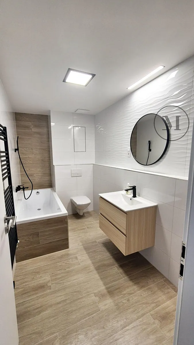 Koupelna s WC, moderní provedení s reliéfními obklady a dlažbou