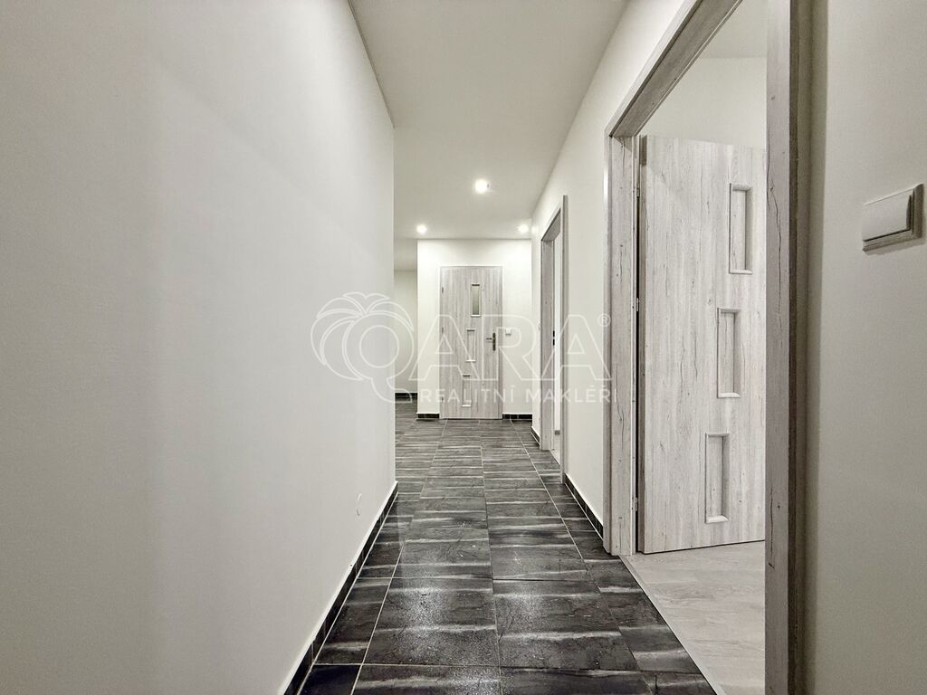 Byt je po kompletní rekonstrukci a nabízí kvalitní vybavení a světlý prostor. V celém bytě jsou nové podlahy, v pokojích plovoucí podlaha a v ostatních částech dlažba. Elektroinstalace je nově zhotovená. Stropy jsou snížené ze sádrokartonu a jsou osazené bodovými světly. Kuchyně je vybavená vestavěnými spotřebiči, konkrétně myčkou a lednicí s mrazákem. Koupelna je rovněž kompletně zrekonstruovaná. Velká plastová okna poskytují dostatek světla. Obytná část je orientovaná na jihovýchod a další pokoje na severovýchod.