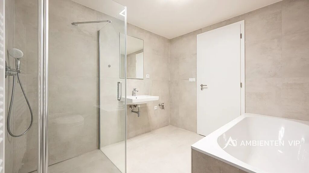 AMBIENTEN VIP si vám dovoluje nabídnout ke koupi ihned volnou bytovou jednotku 4+kk v novostavbě polyfunkční budovy, která se nachází jen pár kroků v bezprostřední blízkosti nákupního centra Vaňkovka. K bytu náleží sklepní kóje a je možnost odkoupit dvě garážová stání (každé jednotlivé za cenu 950.000,-- Kč). Výhodou je, že obě garážová stání jsou v bezprostřední blízkosti výtahu, který vás vyveze do 4 NP budovy. Z tří ložnic máte nádherné výhledy na brněnské dominanty. Okna všech pokojů mají přípravu na osazení venkovních žaluzií či rolet. Obývací pokoj s úžasnou krytou terasou je orientovaný do vnitrobloku směrem na jih. Celý vnitroblok je osázený zelení a terasa vám nabídne možnost příjemného posezení. Obrovskou výhodnou je, že je krytá. Koupelna disponuje vanou, toaletou, sprchovým koutem a je zde příprava pro pračku a sušičku. Dále je zde samostatná toaleta. Jednotka má 4 klimatizace a dále přívod vzduchu. Podlahy jsou plovoucí v dekoru dřeva. Dveře jsou v bílé barvě. Na terase je možnost si osadit dlažbu na terčích či zvolit variantu dřeva dle vlastní volby. Rozměry místnosti jsou: vstupní hala (14,2 m2), obývací pokoj s kuchyňským koutem (29,0 m2) s východem na balkon (10,4 m2) s výhledem do klidného vnitrobloku, pokoj se šatnou (19,7 m2), pokoj (19,5 m2), pokoj (12,3 m2), koupelna s WC (7,1 m2), samostatné WC, šatna (3,0 m2) a sklep (3,8 m2). Kolaudace bytové jednotky byla v roce 2022. Nemovitost nebyla nikdy obývána. Pokud hledáte bydlení v centru na strategické adrese s perfektním parkováním pár kroků do centra s možností si bytovou jednotku udělat dle vlastních představ, tak si neváhejte sjednat prohlídku s námi. Pomůžeme vám také zajistit její kompletní vybavení nábytkem a realizaci interiéru na klíč v případě zájmu.