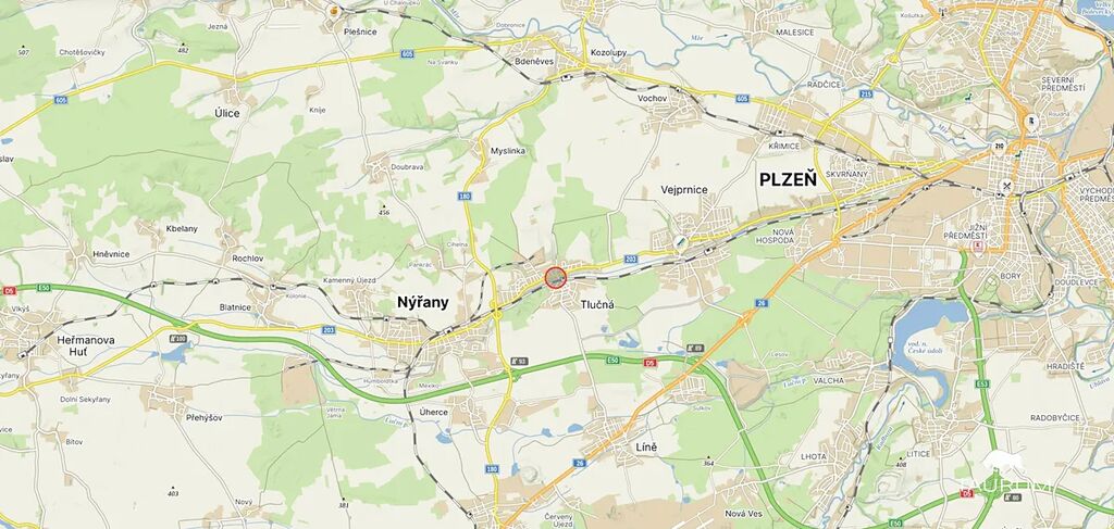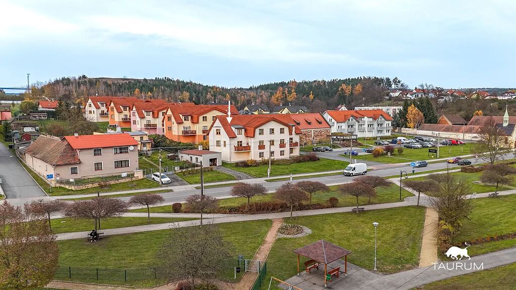Byt se nachází ve skvělé lokalitě, jen pár minut jízdy od dálnice D5 (na okraj Plzně se dostanete za cca 18 min. autem). V blízkosti je také autobusová zastávka (156 m) a vlaková zastávka (272 m), a je tedy zajištěna velmi dobrá dopravní dostupnost do Plzně. Hned vedle domu je parkoviště a naproti němu park s herními prvky pro děti. Obec Tlučná nabízí bohatou občanskou vybavenost – mateřskou a základní školu, obecní úřad, poštu, obchody, restaurace, koupaliště a další.