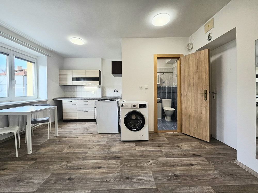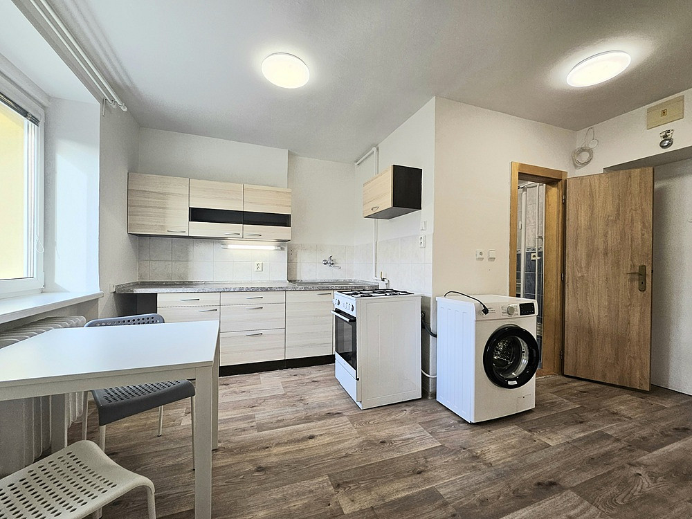 Celková plocha činí 31 m², nabízí se částečně nezařízený, je zde zánovní kuchyňská linka, kombinovaný sporák, nová lednice s mrazničkou, nová pračka, jídelní stůl a židličky, 2x policový díl.