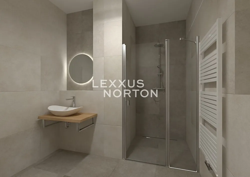 Dispozici doplňuje samostatná koupelna s vanou, oddělená toaleta a praktická komora umístěná u vstupu do bytu. Obě ložnice i obývací pokoj těží z příjemného denního světla díky oknům směřujícím do ulice, zatímco část bytu orientovaná směrem do vnitrobloku poskytuje klid a soukromí. Součástí bytu je také balkón o velikosti 5,58 m², přístupný z ložnice.