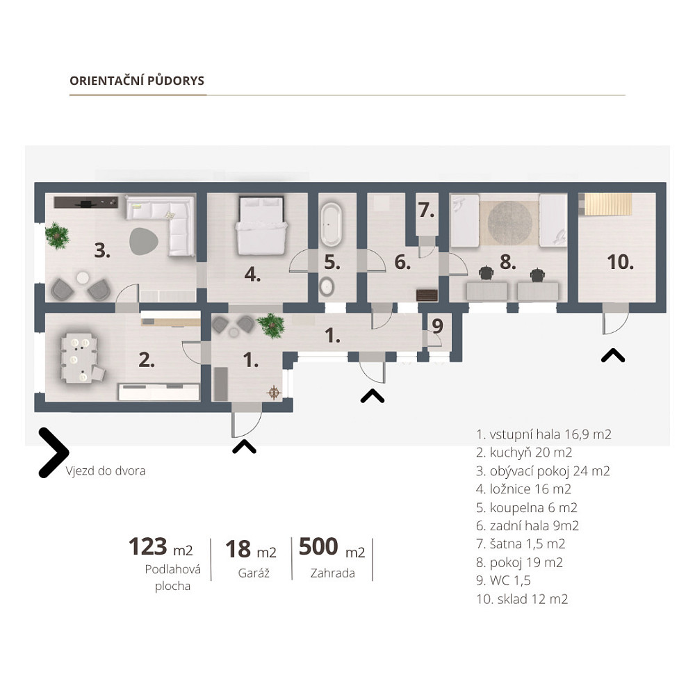 • Možnost bydlení s rekonstrukcí do současného standardu.