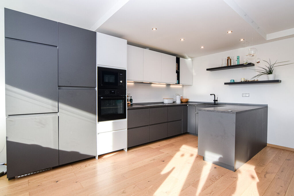 U obývací části se nachází další komora, která aktuálně slouží jako pracovna. Moderní kuchyňská linka je vybavena veškerými vestavnými spotřebiči, nabízí dostatek pracovní plochy i úložného prostoru. V části kuchyně je instalované podlahové vytápění.