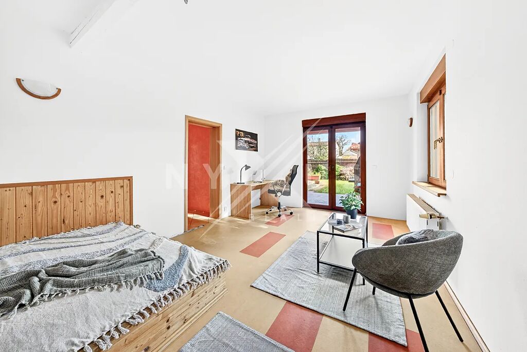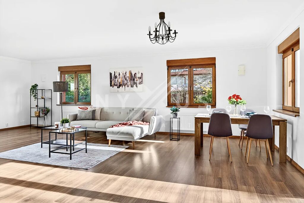 - Velkorysý obývací pokoj s přímým vstupem na zahradu – ideální pro rodinný život i společenské akce