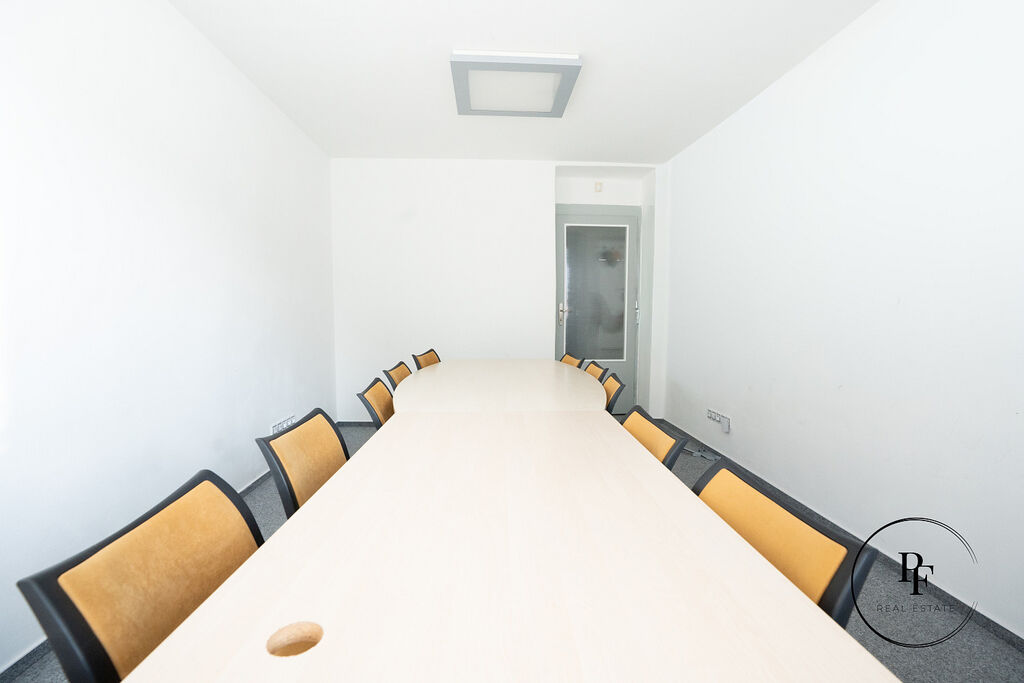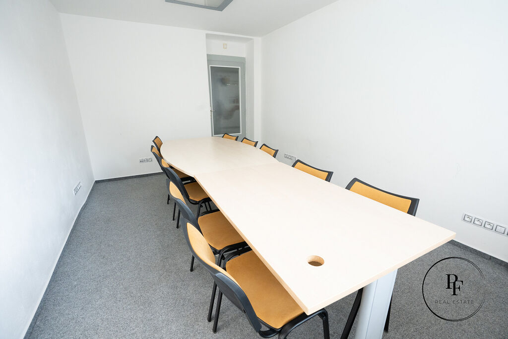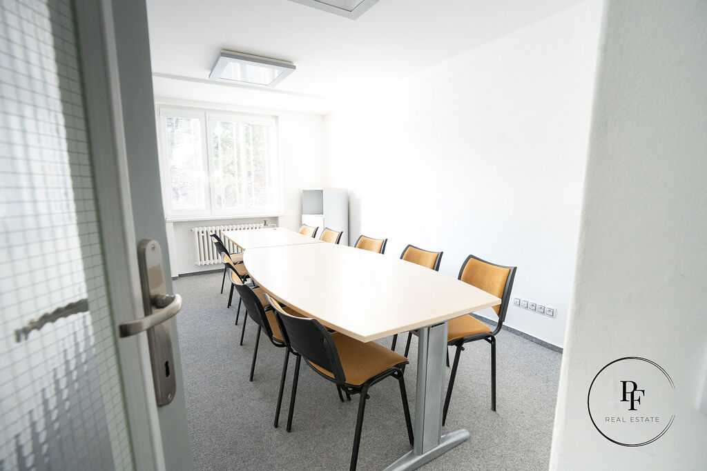 Kancelář je vybavena kobercem, LED osvětlením a pracovním stolem se židlemi. Součástí podnájmu je využívání společných prostor o ploše 13,1 m², které zahrnují:
